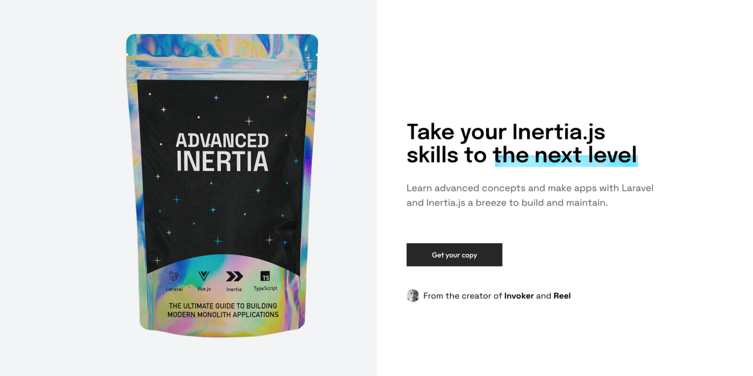 Take your Inertia.js skills to the next level! Advanced Inertia is a fantastic book by Boris Lepikhin that teaches you advanced concepts for building and maintaining Laravel applications using Inertia.